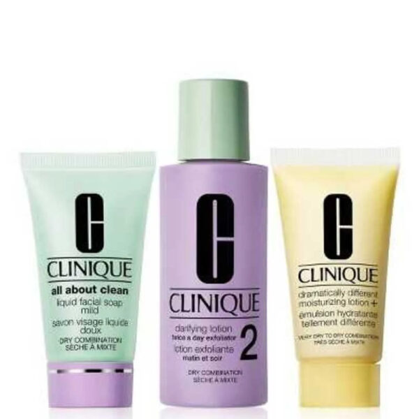 ست سه مرحله ای مراقبت از پوست کلینیک شماره 2 شامل یک صابون مایع، تونر و مرطوب کننده می باشد که برای افراد دارای پوست های خشک تا نرمال مناسب می باشد.