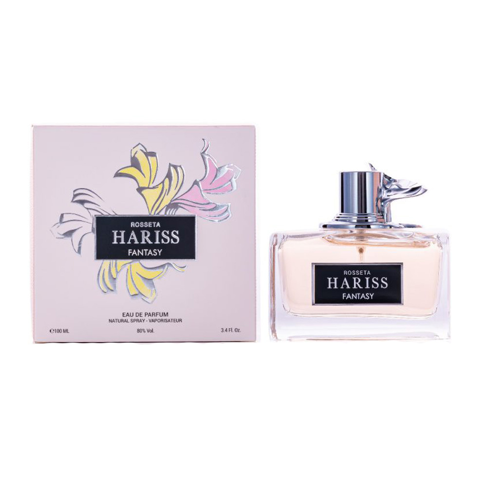 ادوپرفیوم زنانه روزتا هریس Fantasy دارای گروه بویایی گلی و مشک و طبع شیرین است. نت آغازی این عطر ادو پرفیوم زنانه شامل آب دریا، گل رز و ترنج است. با گذر زمان نت میانی که شامل موگه بهار است به مشام می رسد. نت پایانی آن نیز شامل کهربا، انبه و مشک است. این محصول با ماندگاری و پخش بوی مناسب و در بسته بندی شیک و جذاب تولید و عرضه شده است.