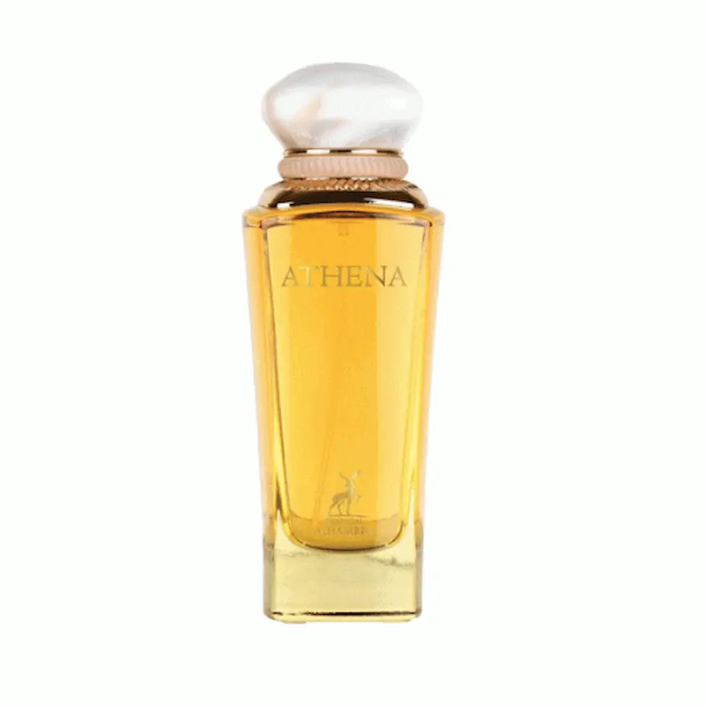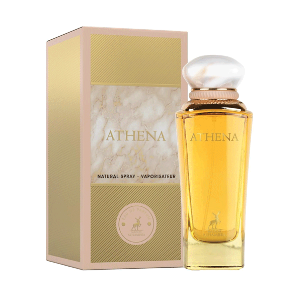 بطری Athena طراحی بسیار لوکس با شیشه شفاف و درب سنگین طلایی دارد که لوگوی برند Alhambra و نام عطر با جزئیات برجسته روی آن چاپ شده است. این طراحی نشان می‌دهد که با عطری روبه‌رو هستید که نه تنها از نظر بویایی بلکه از نظر بصری نیز ارزش کلکسیونی دارد.