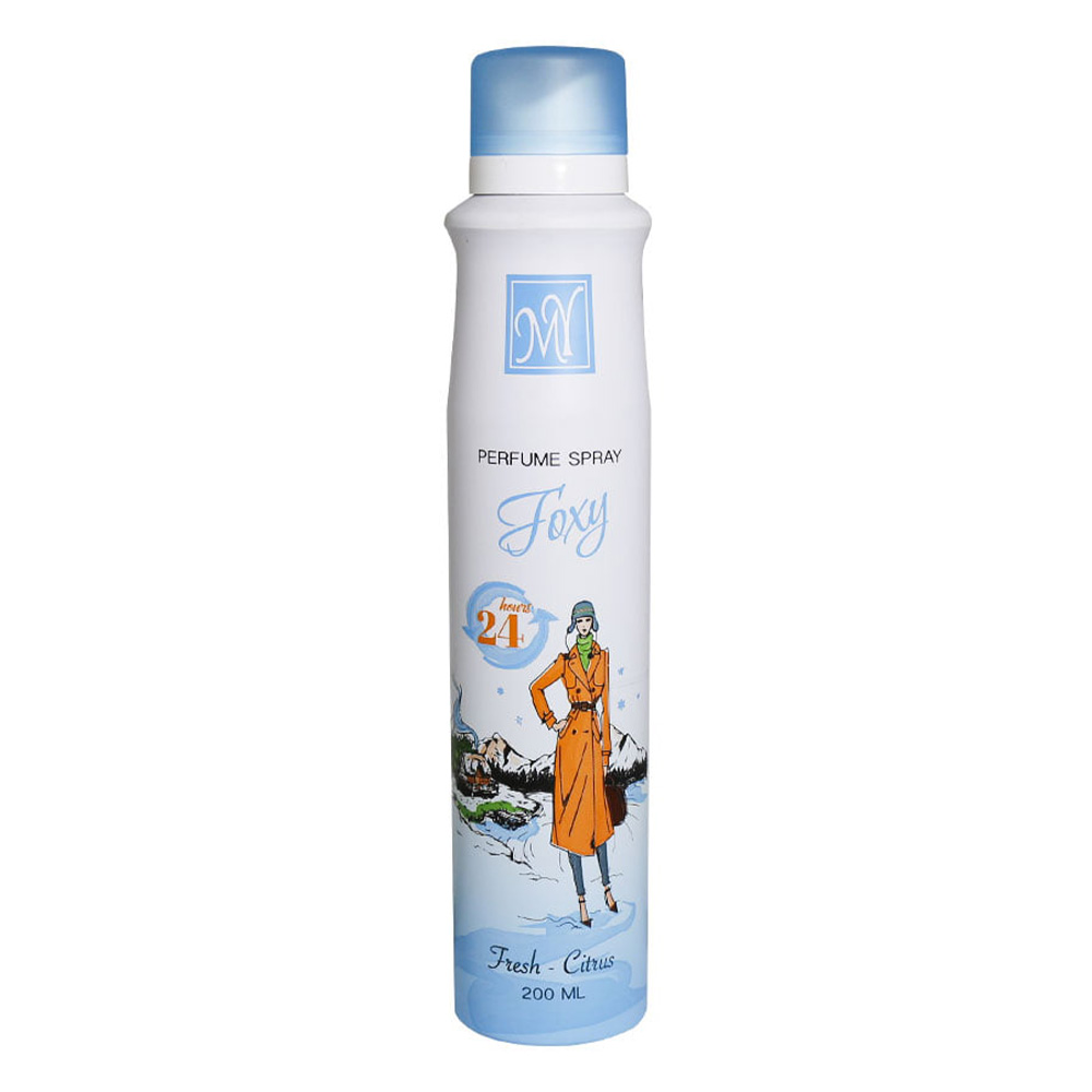 اسپری خوشبو کننده بدن زنانه مای FOXY دارای رایحه ای ماندگار از ترکیب مرکبات، رایحه جاسمین، مری گلد، مشک و عنبر است. از این اسپری برای خوشبو کردن بدن در طول روز استفاده می‌شود. این اسپری با ماندگاری ۲۴ ساعته، رایحه ای تازه و با طراوت را برای شما تکرار می‌کند. این محصول فاقد الکل است. ترکیبات این اسپری به گونه ای است که هیچ لکی روی لباس شما بر جای نمی گذارد و به دلیل سبکی و کم جا بودن آن، به راحتی در کیف حمل می‌شود. تاثیر عطر بر روح و روان به خوبی اثبات شده و بهتر است همیشه از اسپری و عطرهای مرغوب برای خود استفاده کنید.