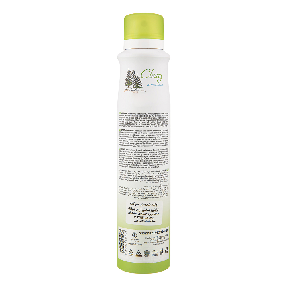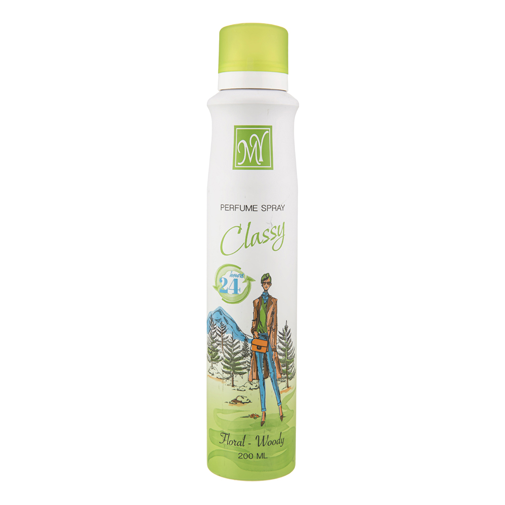 اسپری زنانه مدل Classy دارای رایحه گلی و چوبی بوده و ماندگاری بلند مدتی دارد به گونه‌ای که دارای 24 ساعت ماندگاری بوده و این بدان معناست که بعد از استفاده تا یک روز رایحه آن بر روی بدن ماندگار خواهد بود. این اسپری دارای رایحه خنک بوده و متناسب برای بانوانی طراحی شده است که علاقه مند به رایحه خنک هستند. اسپری کلاسی را می‌توان در تمام فصول سال استفاده کرد اما بهترین زمان استفاده از آن فصول گرم بهار و تابستان است. اسپری کلاسی متناسب برای استفاده بانوانی طراحی شده که دارای فعالیت‌های سنگین هستند و علاقه‌مند به ورزش می‌باشند و یا مشاغلی سخت دارند. حجم اسپری زنانه کلاسی 200 میلی لیتر بوده و قابل استفاده در مدت زمان بالایی است. در خصوص این اسپری می‌توان گفت از آنجایی که این محصول ماندگاری بالایی دارد برای همین در مدت زمان یک روز بدن شما را به دور از بوی تعریق و بوی بد و نامطبوع نگه می‌دارد. درون این محصول از الکل استفاده شده است و به همین دلیل قابلیت اشتعال دارد بنابراین هیچ وقت این محصول را در جوار حرارت و شعله آتش قرار ندهید زیرا امکان ترکیدن آن وجود دارد.