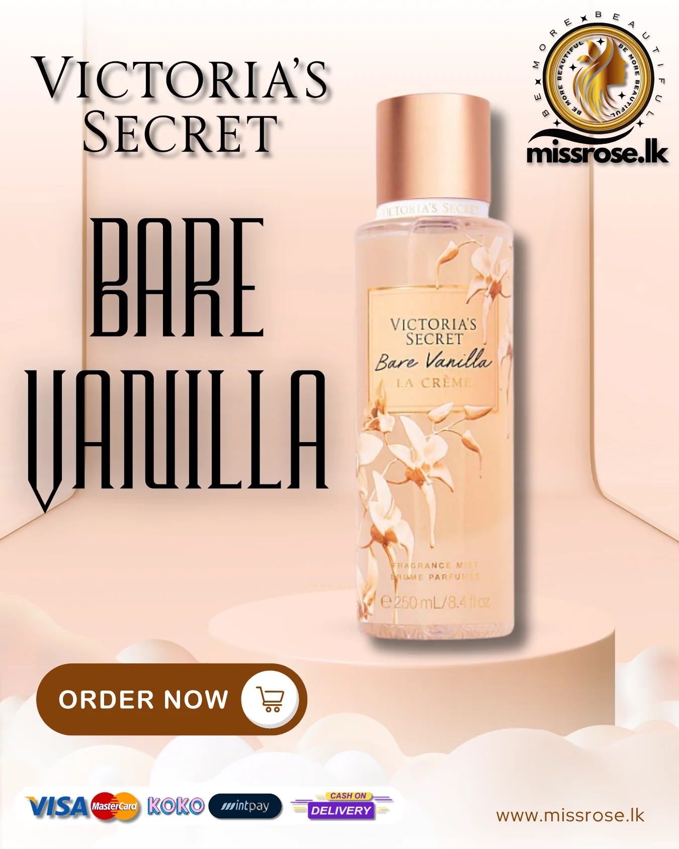 بادی اسپلش بر وانیلا ویکتوریا سکرت Bare Vanilla  - رایحه وانیل خالص، ملایم، گرم و کاملاً زنانه و دلنشین برای  افسون حس سادگی لاکچری وانیل نایاب