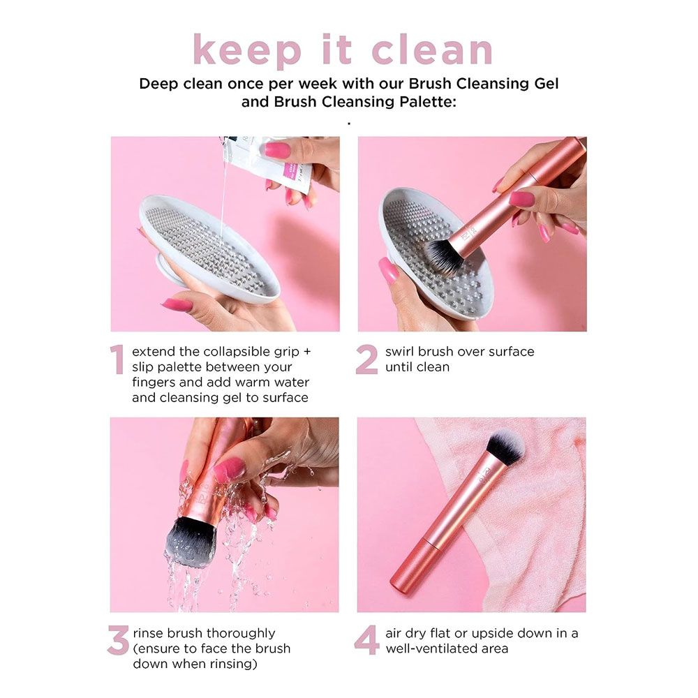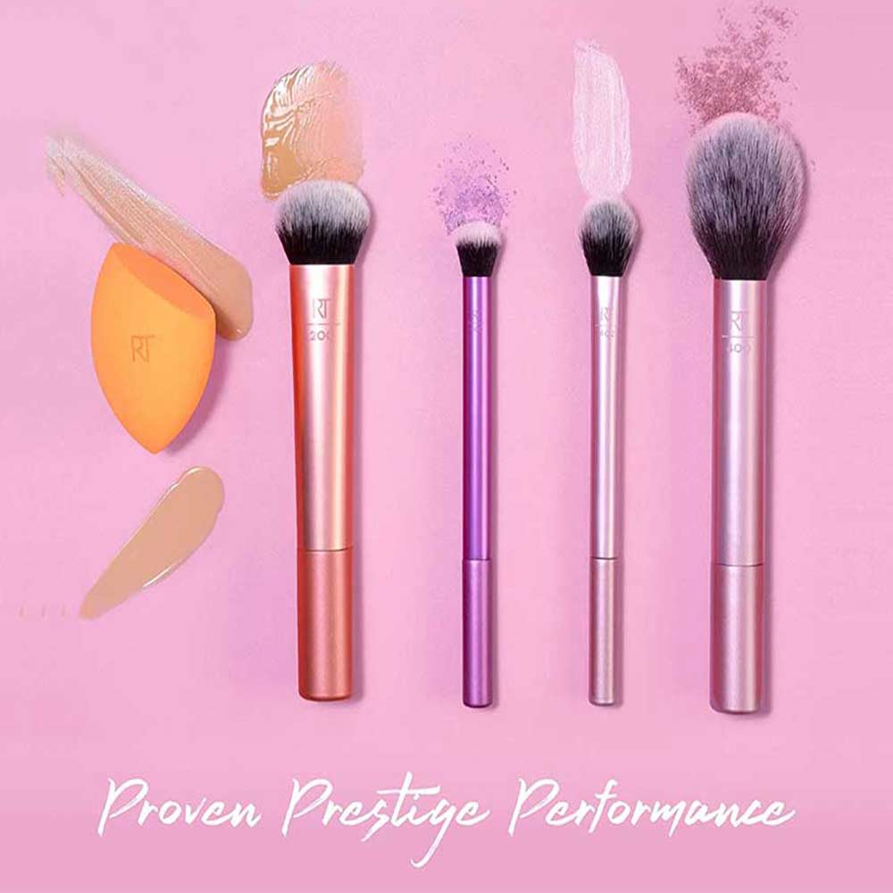 ست براش آرایشی ریل تکنیک EVERYDAY ESSENTIALS در ورژن جدید خود شامل چهار براش و دو عدد اسفنج با کیفیت و عالی برای افرادی است که میخواهند آرایشی زیبا و جذاب داشته باشند. این براشها از پرزهای بسیار لوکس و نرمی ساخته شدهاند که باعث شده بسیار صاف و نرم باشند.ست اوری دی اسنشال دارای 4 براشی فوقالعاده برای کرم پودر، براشی مناسب برای کانسیلر، براش سایه چشم، هایلاتر و دو اسفنج میباشد. براشهای ست براش ریل تکنیک دوام بسیار بالایی داشته و تا مدتها میتوانید از آنها استفاده کنید؛ بعلاوه براشهای موجود در این ست همگی سبک بوده و تمیز کردن آنها بسیار آسان است.