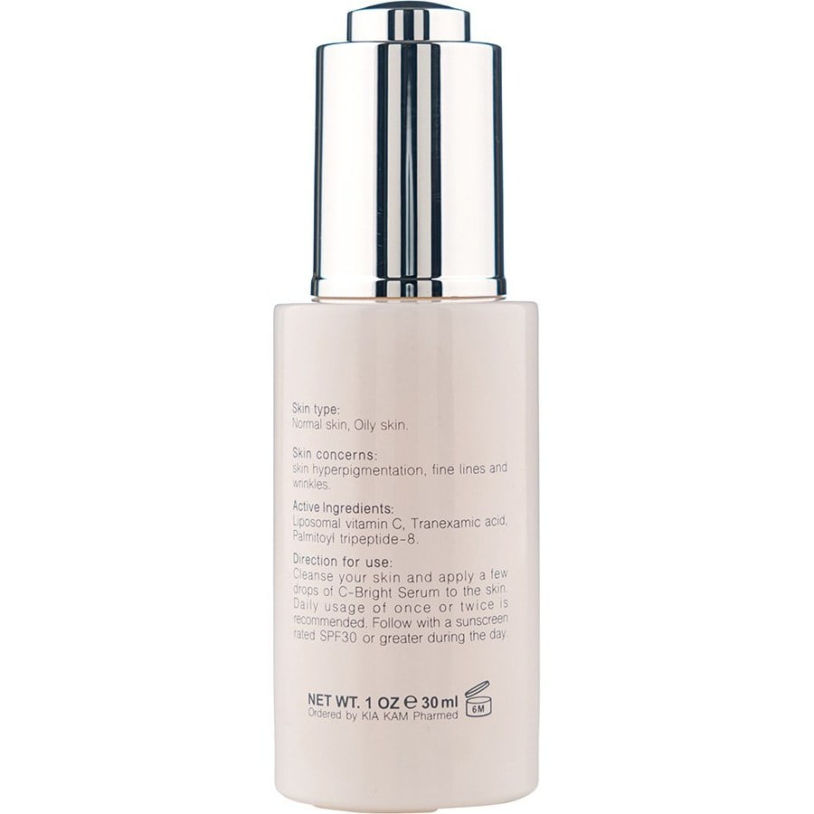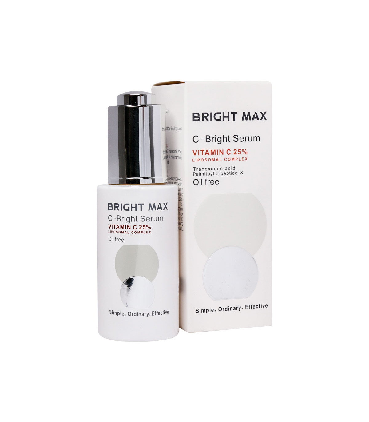 سرم برایت مکس Vitamin C با دارا بودن خاصیت آنتی اکسیدانی، روشن کنندگی، ضد التهاب و ضد چروک، از پوست در برابر اشعههای مضر خورشید و آلایندههایی که باعث پیری زودرس پوست میشوند، محافظت مینماید. این محصول برای انواع پوست به ویژه افراد با پوست چرب مناسب است.این محصول با استفاده از تکنولوژی لیپوزوم، مقادیر بالایی ویتامین ث را با حداکثر اثربخشی به لایههای عمیقتر پوست منتقل میکند.ویتامین C با ممانعت از سنتز ملانین و افزایش سنتز کلاژن خواص روشن کنندگی و ضدچروک اثبات شدهای دارد. همچنین ویتامین C، ترنگزامیک اسید و فرولیک اسید موجود در ترکیبات این محصول با فراهم آوردن محافظت آنتی اکسیدانی قوی، مانع تخریب کلاژن پوست و نیز از بین رفتن چربیهای طبیعی شده و به بهبود خطوط ریز و چروکها کمک میکند.