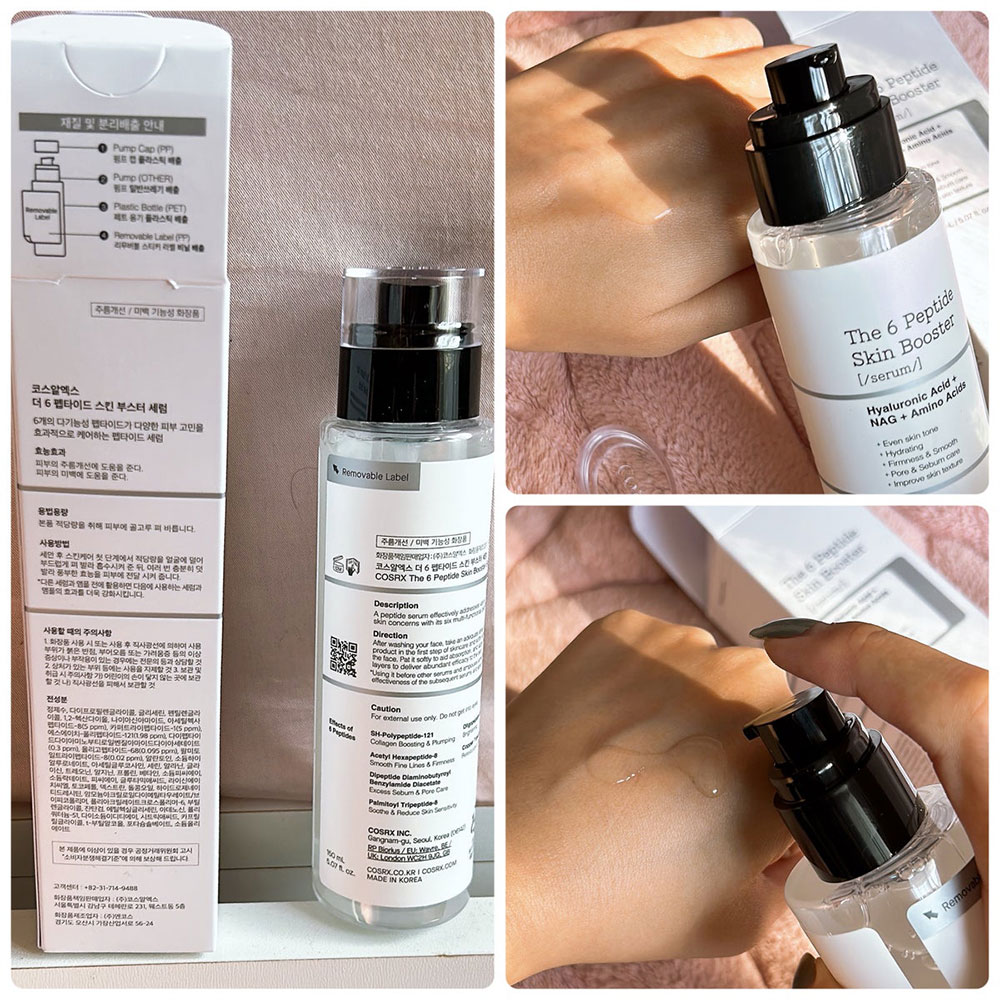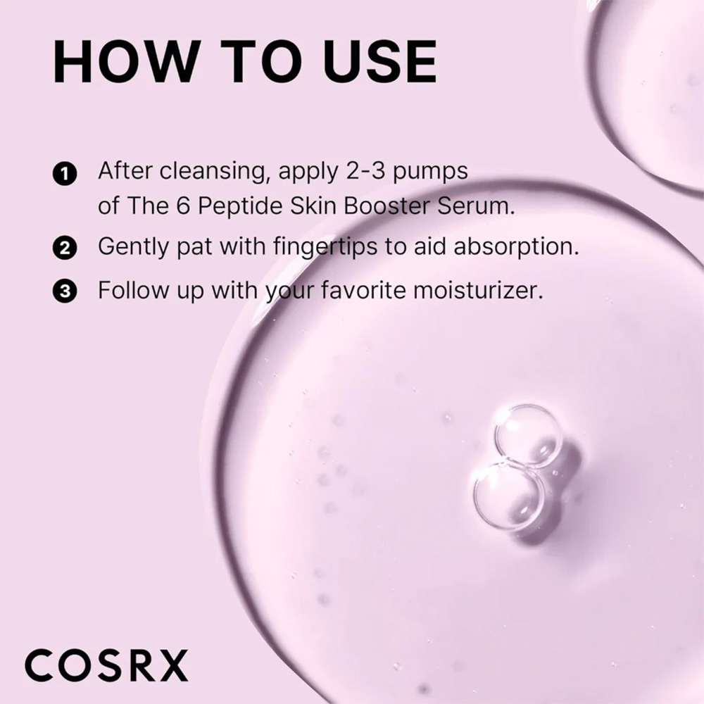 سرم تقویت کننده پوست کوزارکس skin boster علاوه بر پپتیدها حاوی مواد آبرسانی مانند گلیسیرین و پانتنول است که پوست را عمیقا تغذیه کرده و سد محافظ آن را تقویت می کند. آنتی اکسیدان های موجود در فرمول به محافظت از پوست در برابر آسیب های ناشی از رادیکال های آزاد و عوامل محیطی کمک می کند و درخشندگی طبیعی آن را حفظ می کند.سرم هیالورونیک اسید کوزارکس Cosrx the 6 peptide skin booster serum دارای بافت سبک و بدون چربی این سرم به سرعت جذب پوست می شود و آبرسانی آنی و احساس راحتی را فراهم می کند. این سرم مناسب برای انواع پوست، مخصوصاً برای افرادی که به مبارزه با علائم پیری و حفظ پوستی سالم و درخشان اهمیت می دهند، مناسب است.