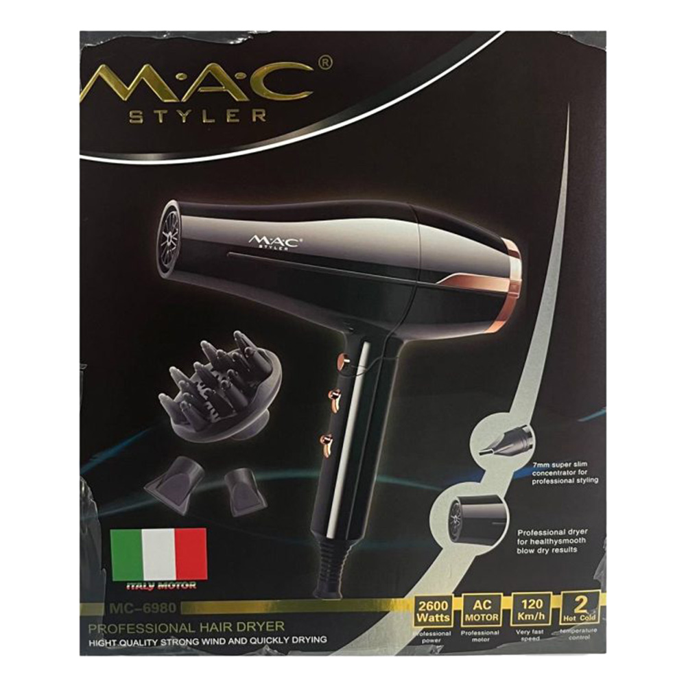سشوار مک استایلر MC-6980 یکی از اصلی ترین لوازم برای خشک کردن و حالت دادن موها سشوار می باشد که جزو پرکاربردترین لوازم به حساب می آید بسته به نوع استفاده در دسته بندی های متفاوتی قرار می گیرند. از جمله سشوار خانگی، سشوار حرفه ای، سشوار فوق حرفه ای و سشوار مسافرتی برای خرید یک سشوار خوب باید به نوع موتور، قدرت، حرارت، سرعت، دکمه باد سرد و لوازم جانبی توجه داشته باشید. موتور موجود در این سشوار ایتالیایی است و توان مصرفی ۲۶۰۰ وات دارد.