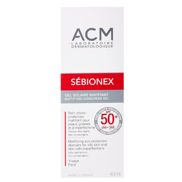 ژل ضد آفتاب ماتکننده بسیار سبک فاقد هرگونه چربی، روغن و فراوردههای چرب ای سی ام ACM Sebionex Mattifying Sunscreen Gel SPF50